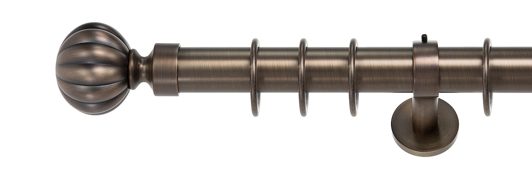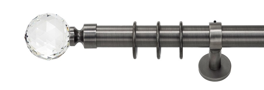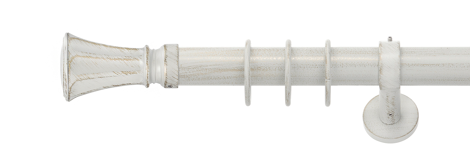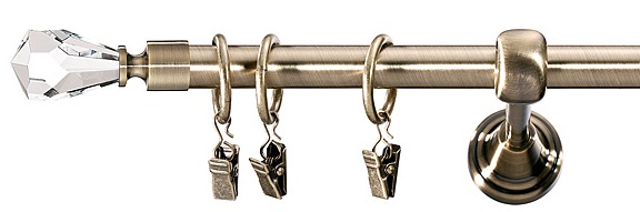 Karnisze zaskakują już samą wielkością. Zastosowano w nich drążek o średnicy aż 35 mm, co stanowi mocny akcent w klasycznej dekoracji okna. Kolejna niespodzianka to kolory. Obok ponadczasowego antyku pojawia się szlachetna – dedykowana do wnętrz w stylu angielskim lub vintage – stal rustykalna.